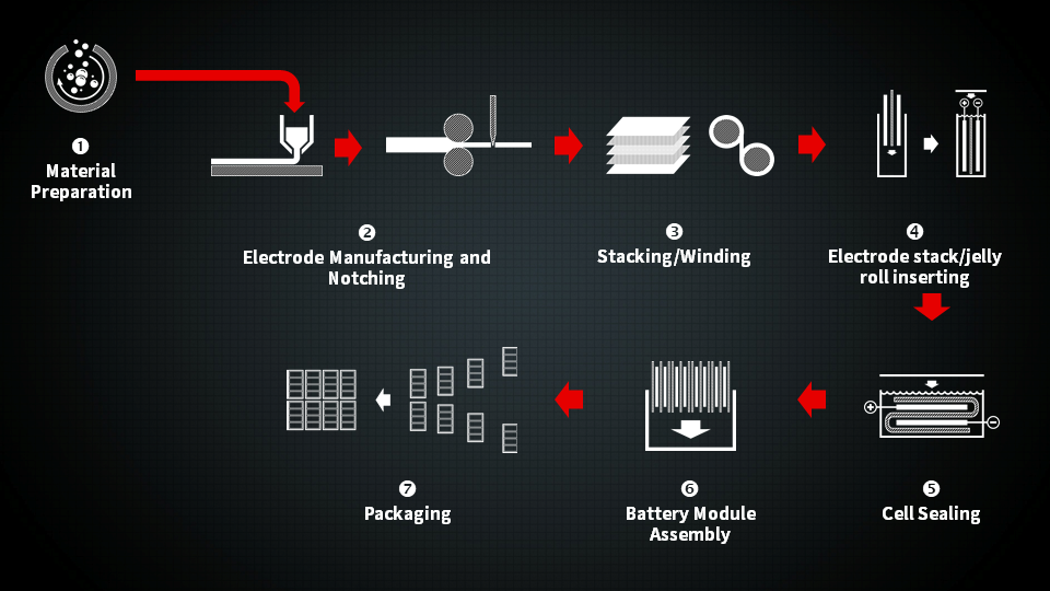 通常,鋰電池的生產(chǎn)包括材料準(zhǔn)備、電極制造和開(kāi)槽、電芯制造、電池模塊組裝和電池封裝幾個(gè)步驟。通常,鋰電池的生產(chǎn)包括材料準(zhǔn)備、電極制造和開(kāi)槽、電芯制造、電池模塊組裝和電池封裝幾個(gè)步驟。