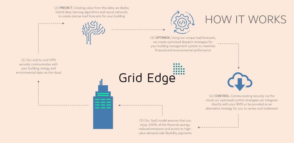 英國的一家名為Grid Edge的公司(提供基于云計算的電力管理軟件服務(wù))聲稱,他們利用人工智能技術(shù)對能源配置進行了預(yù)測和優(yōu)化,實現(xiàn)了將控制權(quán)交還給了電力使用者。具體的方法是,Grid Edge操作一個VPN,通過它來連接和分析用戶所在建筑的能源消耗數(shù)據(jù),利用這些信息,Grid Edge與連接的電網(wǎng)進行通信,并制定相應(yīng)的調(diào)度策略。這些策略的目的是節(jié)約能源,避免超載。